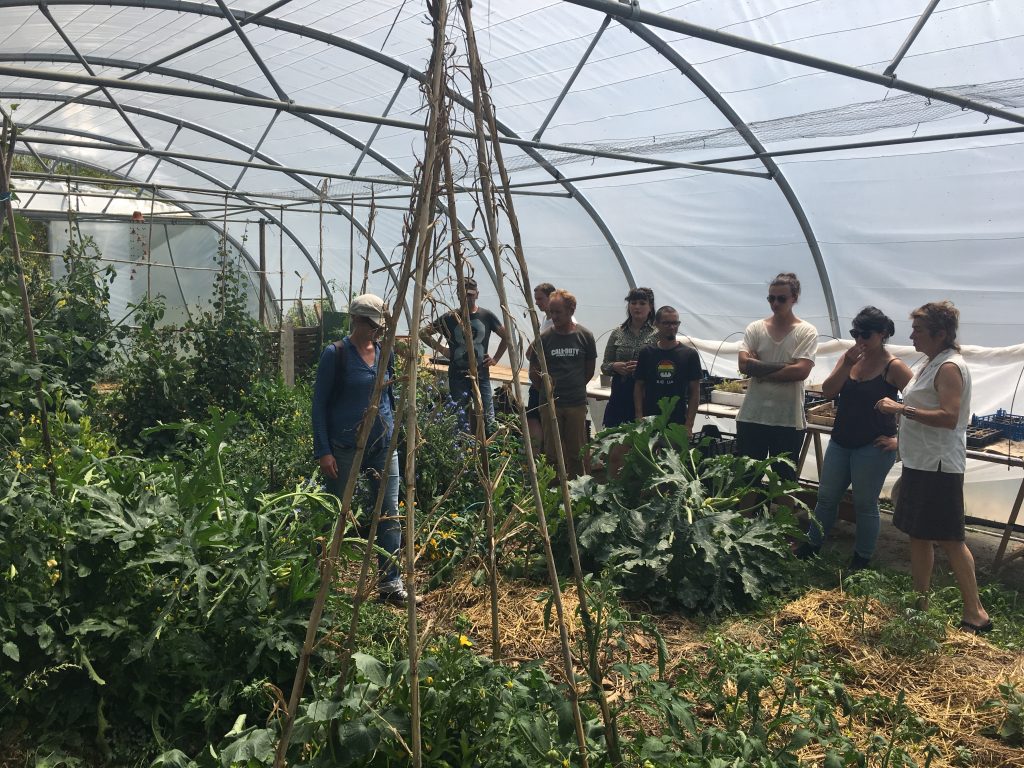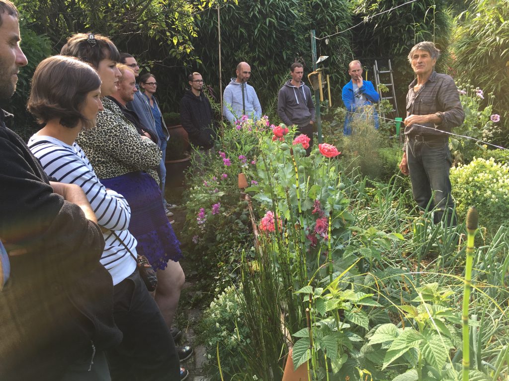 Puis direction, l’ île – Jardin de Kervolan à St Molf. Ce grand jardin abrite plusieurs îlots de surprise : un jardin d’ornement avec ses curiosités végétales, un espace expérimental cultivé en permaculture ainsi qu’un jardin préhistorique. Stéphanie est l’artisan de ce lieu depuis une quinzaine d’années pui qui tout a une explication et une raison d’être.