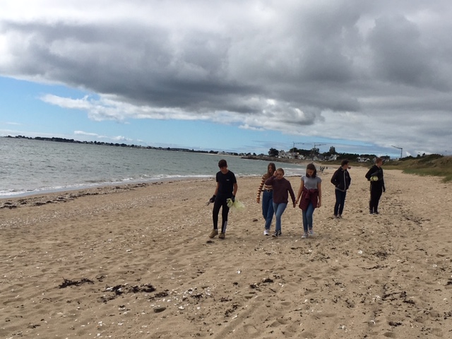 Accompagnés d’Elisabeth NOVEL, Chargée de prévention pour la communauté de communes de Questembert, les élèves ont nettoyé la plage de ses déchets.