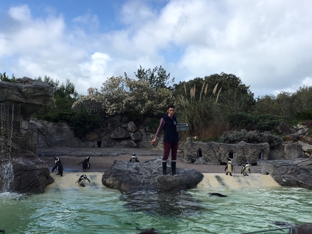 A 15h00, les deux classes ont assisté au nourrissage des manchots suivi de près par 2 goélands!