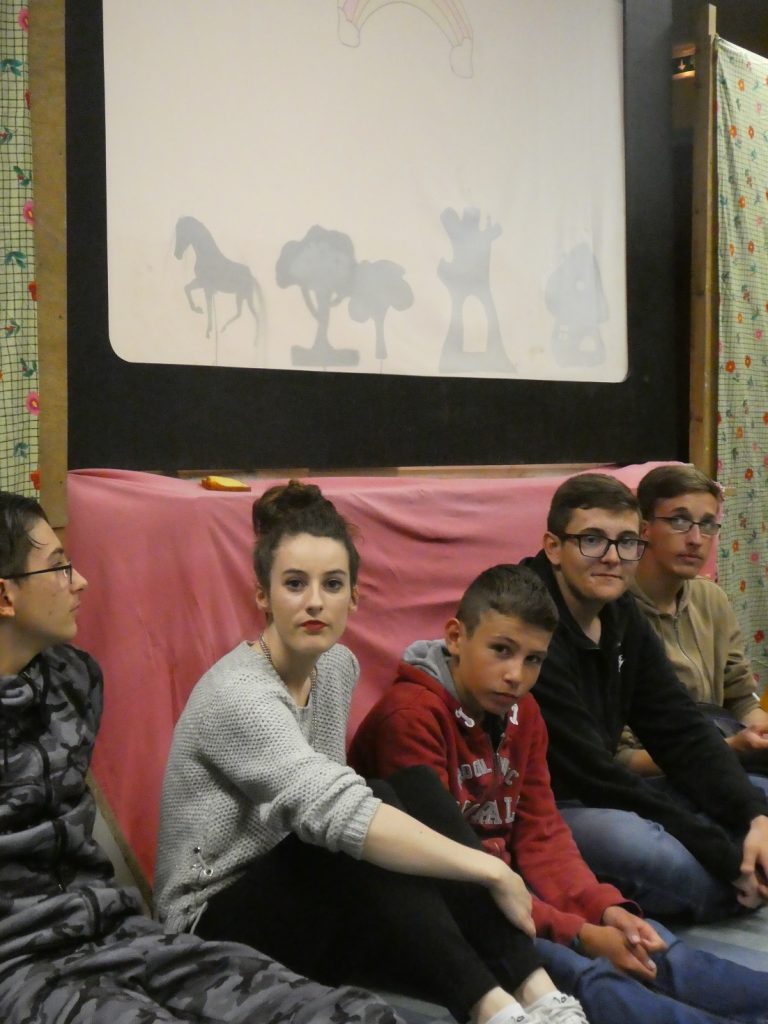 Les élèves de 4ème ainsi que les secondes SAPAT ont présenté le spectacle d’ombres chinoises aux élèves de grande section et de moyenne section de l’école maternelle de Notre Dame de Questembert.
